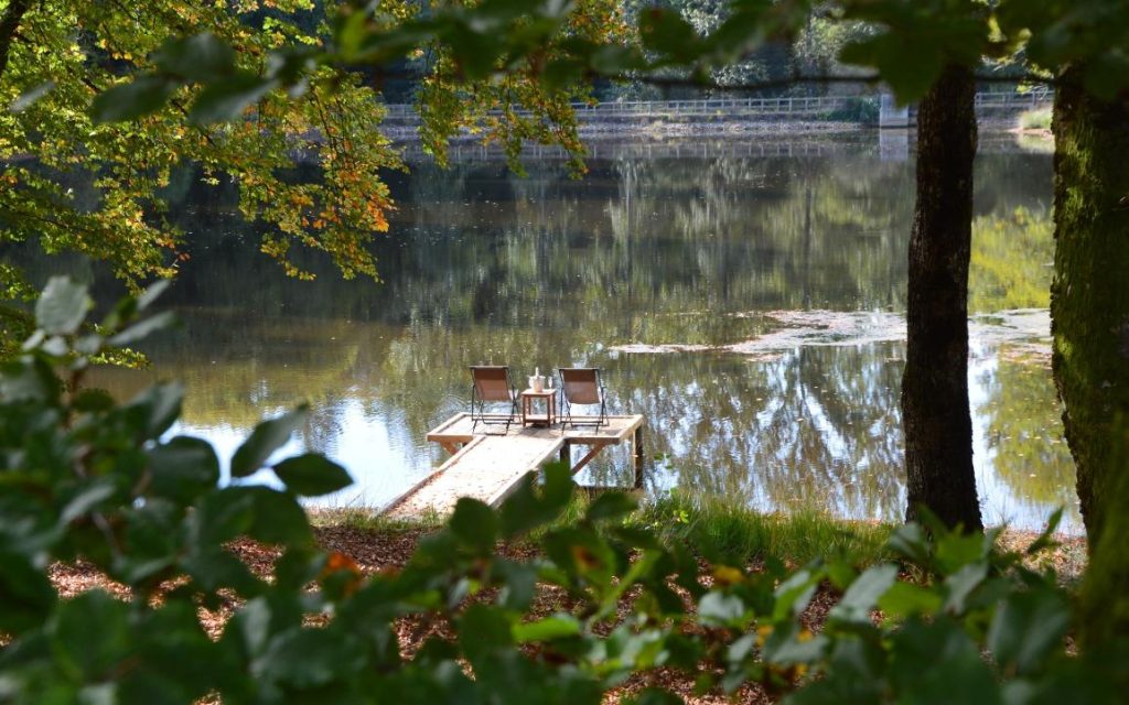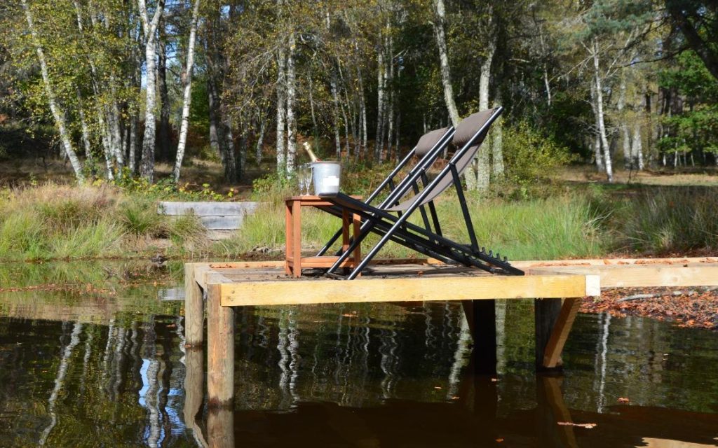 Les 3 cottages Carpe Diem donnant sur le petit étang de Nirige disposent désormais de pontons en bois . A vous de choisir ce que vous allez en faire …. pêche, apéro, transat au soleil …